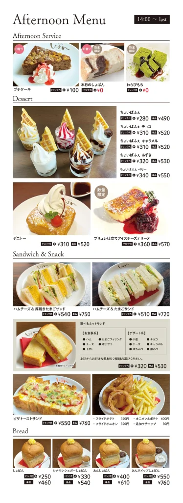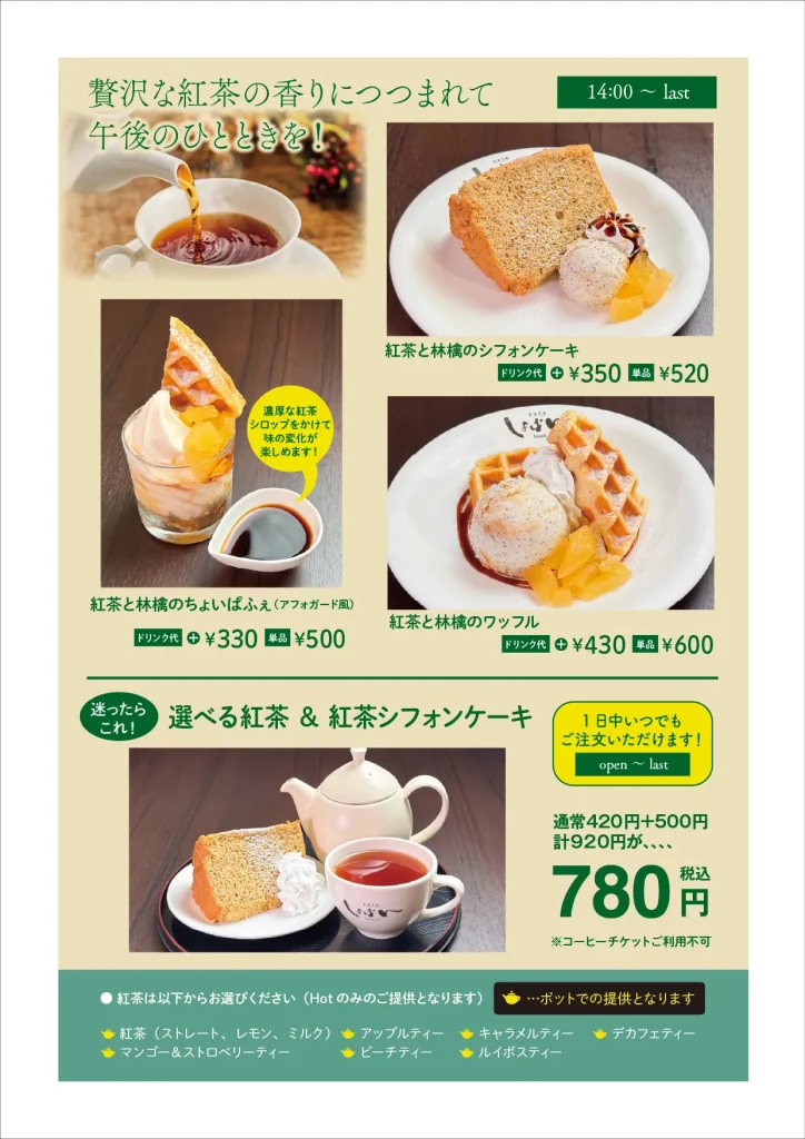 アフタヌーンメニュー(HP参照)