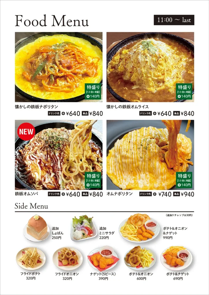 レギュラーメニュー(HP参照)