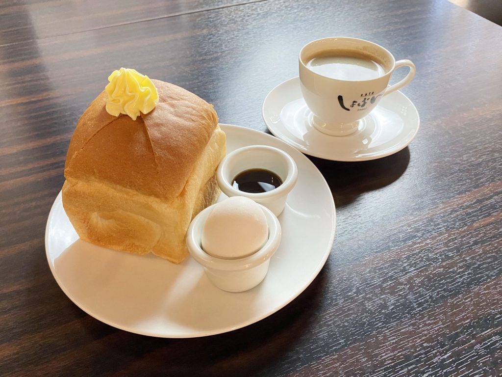 ふかふかのボリュームサイコロ食パンにマーガリンやメープルシロップをつけて、お楽しみください🎵(HP参照)