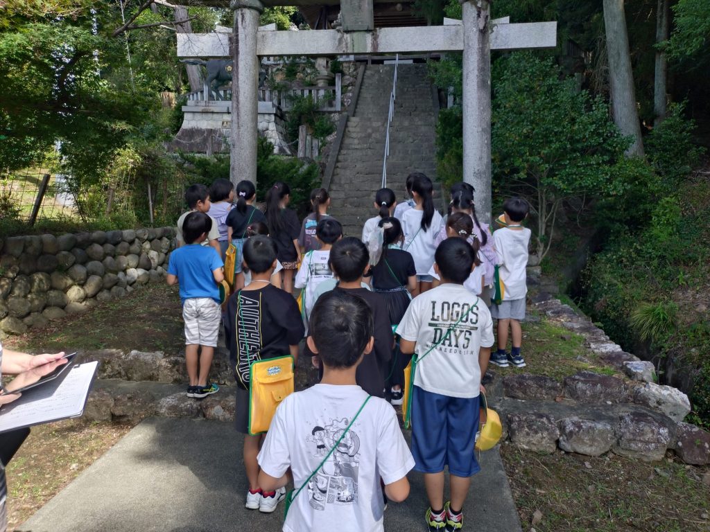 1・2組が一緒に白山神社に参拝しますが、鳥居の名称等や鳥居を通る時のマナーを説明しました。・・生徒さんは帽子を脱ぎお辞儀をしてから、鳥居の端から入場。⛩🤗🚶♂️🚶♀️(午前9時58分)
