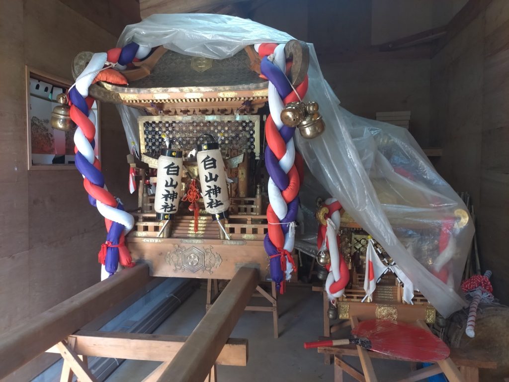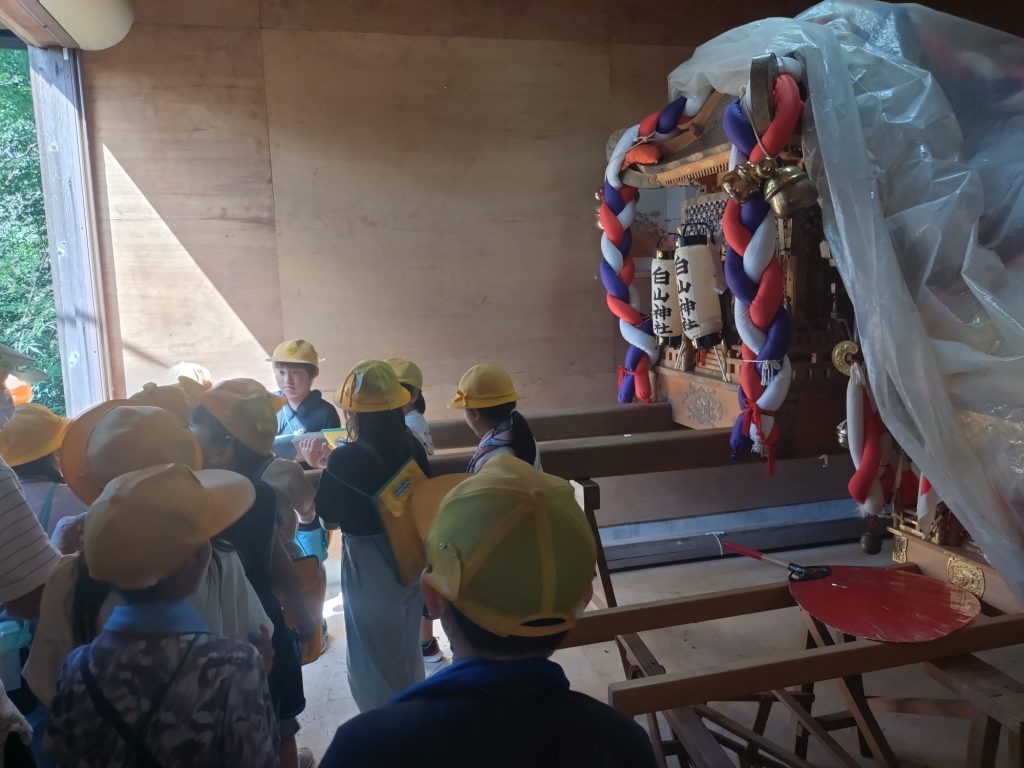 白山神社に保管されている神輿を見学したが、1組の生徒さんの見学を忘れました。😥・・2組の生徒さんが興味深く見ていました。(午前10時47分)