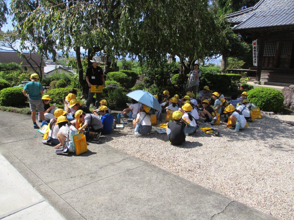 見学を終了後舎衛寺で生徒さん達に熱中症対策で、希望者に天然水を水筒に補給し、トイレ休憩後常磐小学校に向かいました。(午前10時48分)
