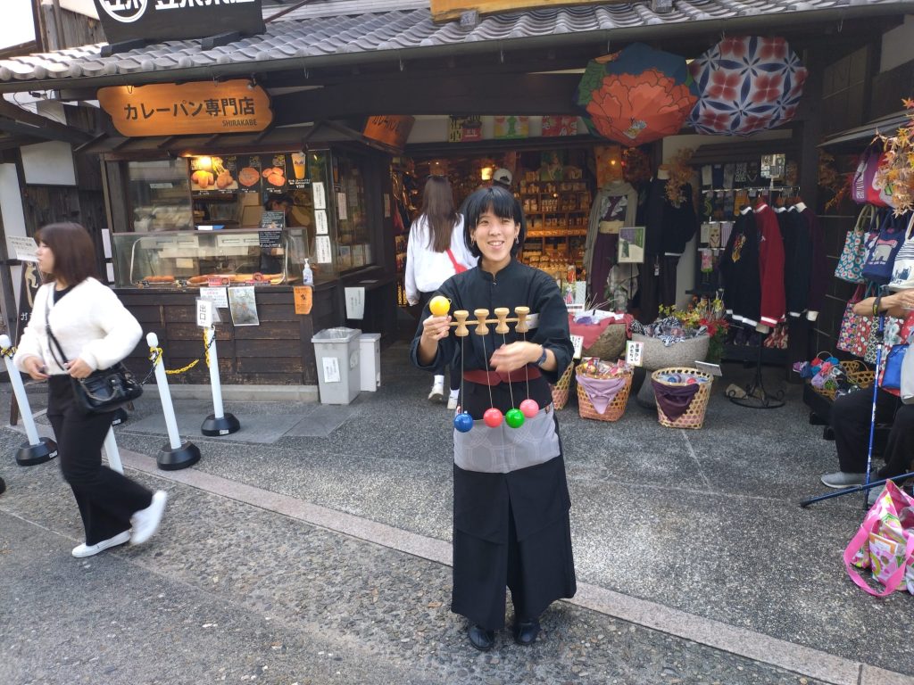 カレーパン専門店の前に来たら、女性店員がけん玉に挑戦をしませんかと話しかけて来た。・・仲間が出来そうもないのに挑戦❗(午後12時11分)