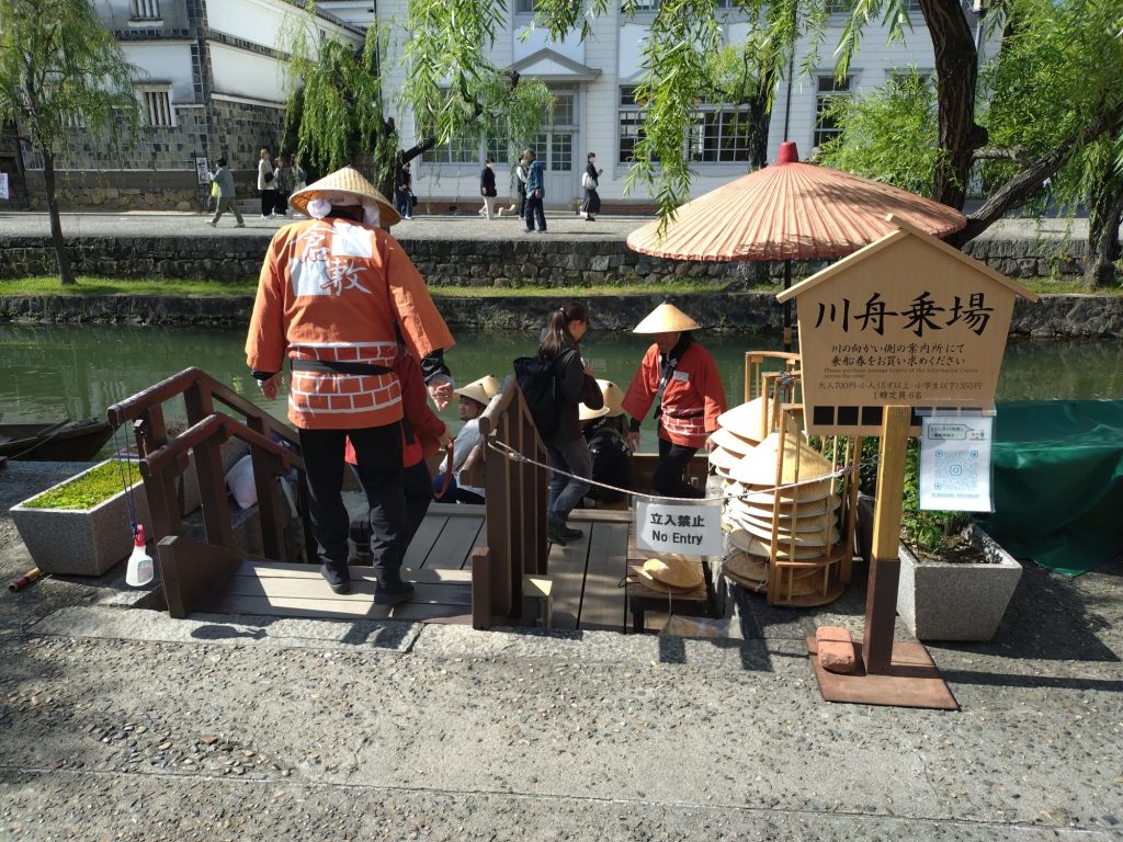 観光案内所(倉敷館)の川を挟んで反対側に川舟乗場があり、1艘:6名の定員 料金:大人 700円(午後12時25分)