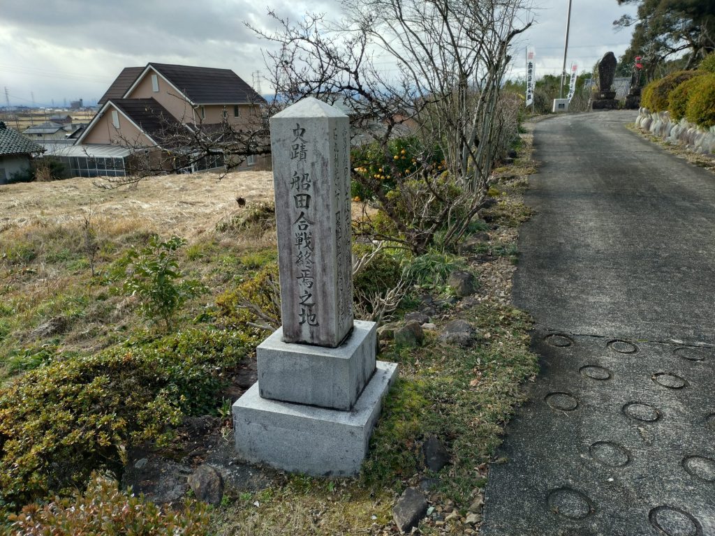 1977年(昭和52年)3月、石丸利光の子孫30余人が陣没した先祖の追善供養を行った。・・その時、史跡「船田合戦終焉之地」の石碑を建立。(3日 午後1時48分)