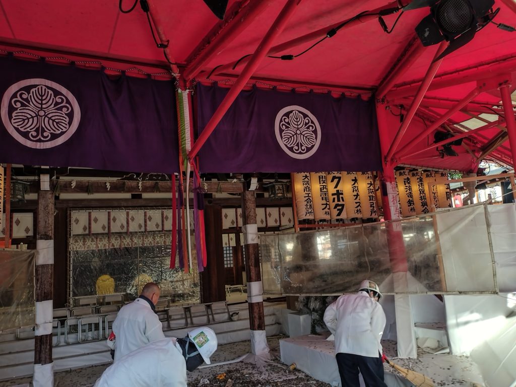 今宮戎神社の「本殿」に参拝後写真を撮影したが、お賽銭をほうきで集めています。・・かなりの量です。(午後2時34分)