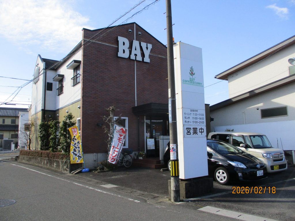 「蝉東公園」を通過しさらに南に行くと、右に「BAY(米) COFFEE&CURRY」(元・米店❓)が見えて来ました。・・モーニングはおにぎり🤗🍙(‏‎午前9時41分)